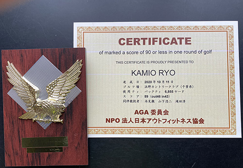 ゴルファー賛歌!90切り証明証と記念タテ